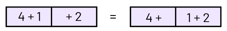 « 4 » « plus » « un ». La boîte voisine indique « plus » « 2 ». « Égal ». Une boîte contenant « 4 » « plus ». Elle est