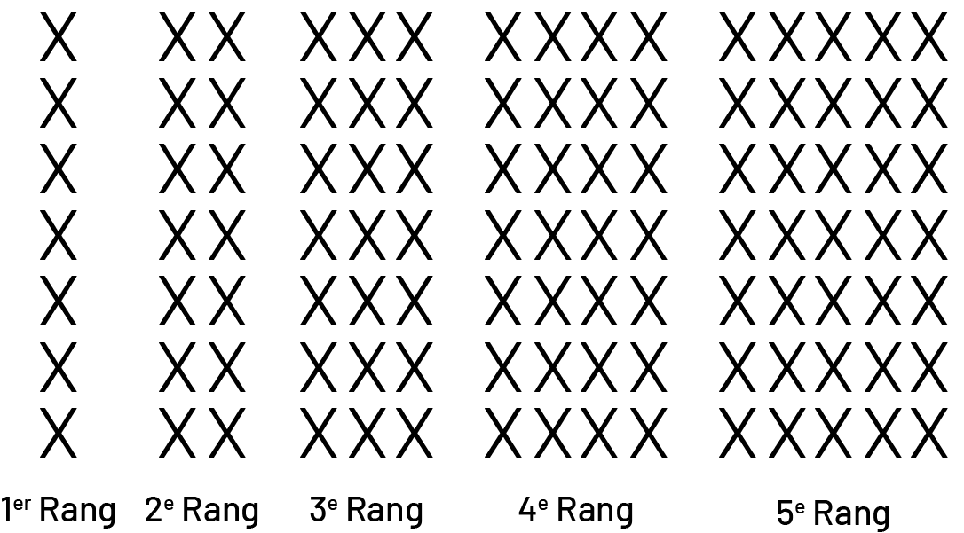 La table de valeurs ci-dessous donne la quantité de languettes en bois requise pour une bande de 1 figure, de 2 figures, de 3 figures, de 4 figures et de 5 figures.