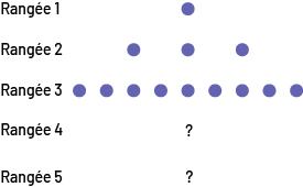 Image Figure montrant des jetons placés dans la séquence de classement d'une pyramide. Rang 1 : un jeton. Rang 2 : 3 jetons. Rang 3 : 9 jetons. Rang 4 : point d'interrogation. Rang 5 : point d'interrogation.