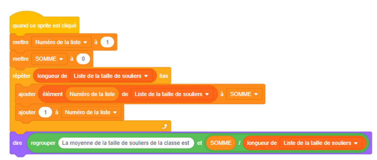 attaché à ce bloc : il faut une liste dans laquelle toutes les données de tailles de souliers d’élèves