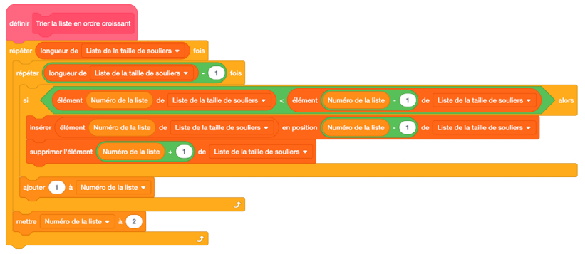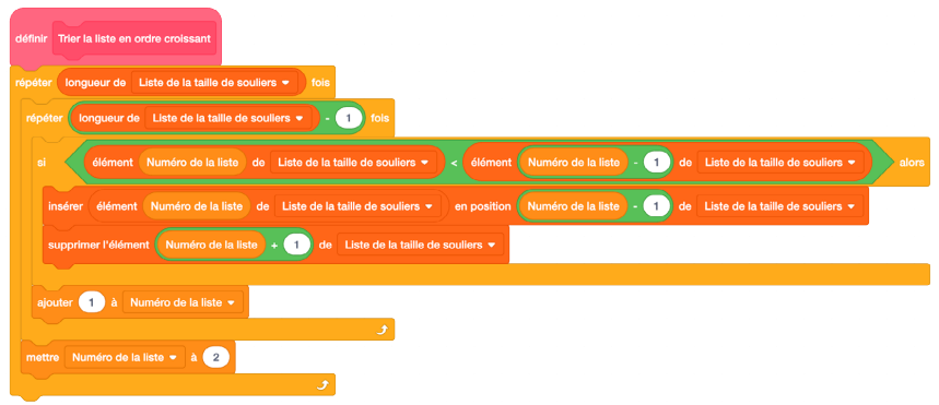 Blocs de codage attachés les uns aux autres : Mes blocs : définir « trier la liste en ordre croissant. » 3