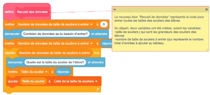 ce bloc : Il faut une liste dans laquelle toutes les données de tailles de souliers seront compilées. Bloc
