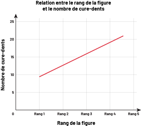 Les suites non numériques croissantes peuvent servir d’introduction aux représentations graphiques. Le rang des figures dans les suites non numériques croissantes correspond aux valeurs sur l’axe horizontal. La valeur du terme de chaque figure est représenté par les valeurs sur l’axe vertical. L’axe vertical représente aussi la valeur du terme qu’il y aura au rang 0 (la valeur de la constante), qui est l’ordonnée de la représentation graphique.