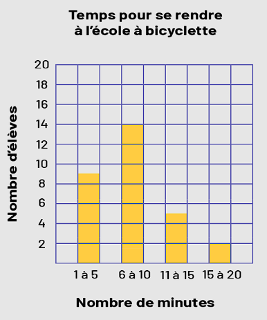 diagramme quadrillé à 4 bandes jaunes illustre le temps pour se rendre à l’école à bicyclette. L’axe