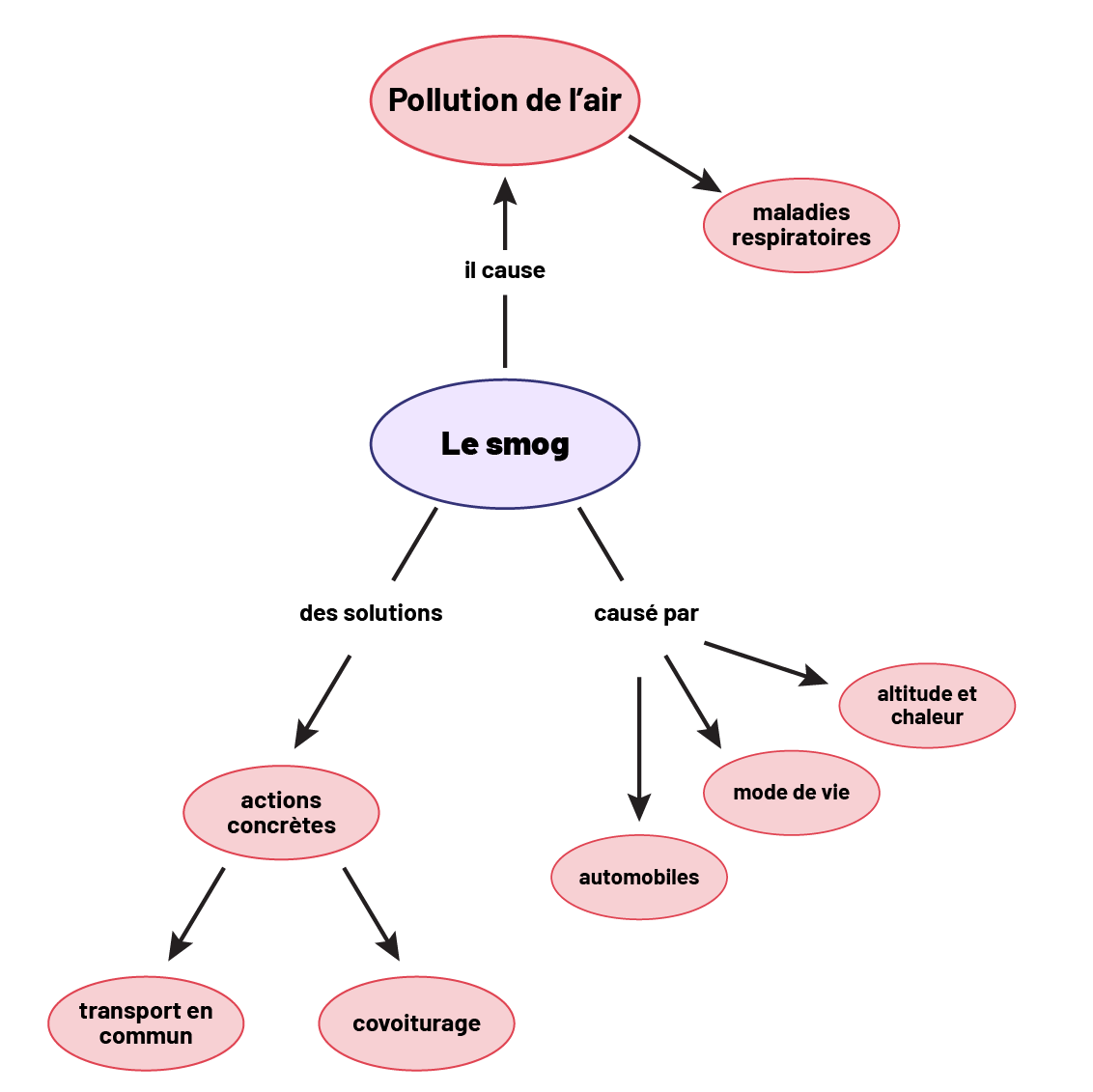 covoiturage ».Retour à la bulle du centre « Le smog ». Il y a une flèche qui pointe vers le bas, à droite. Dans la