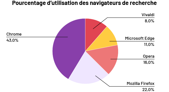 diagramme circulaire illustre le pourcentage d’utilisation des navigateurs de recherche. Il est divisé en cinq