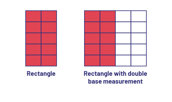 To verify the conjecture, the teacher asks students to double the length of the base and determine the area of the new rectangle.