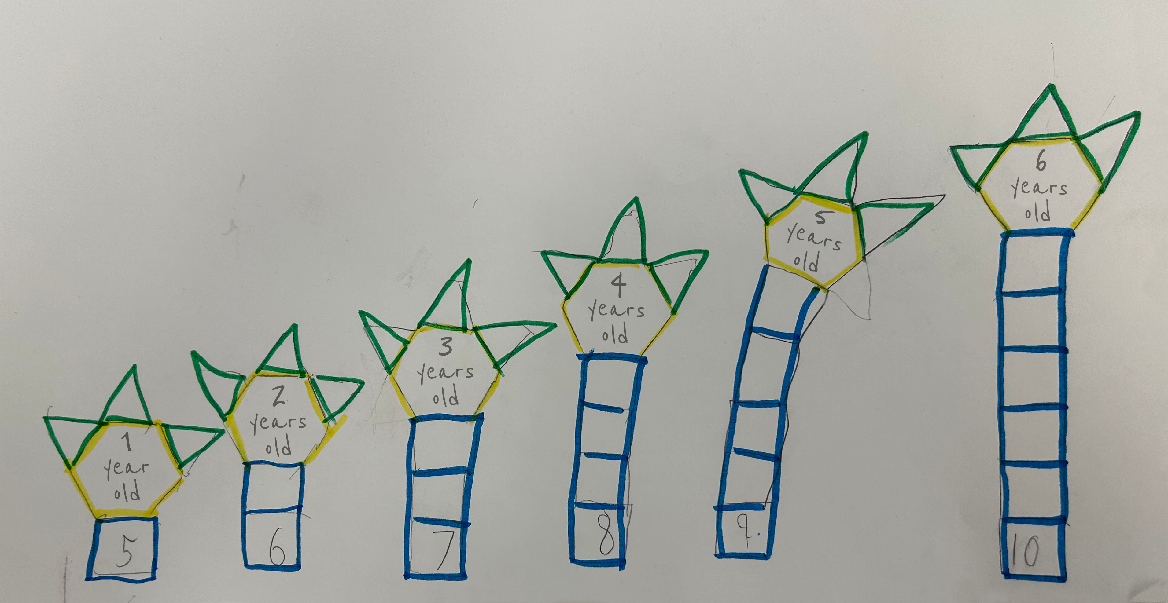 The age of the tree and the number of shapes to represent each year.