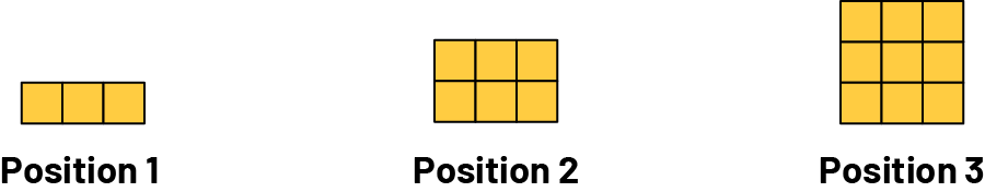 In Pattern B, one square is in Position 1 and in Pattern C, two cubes are in Position 1. |