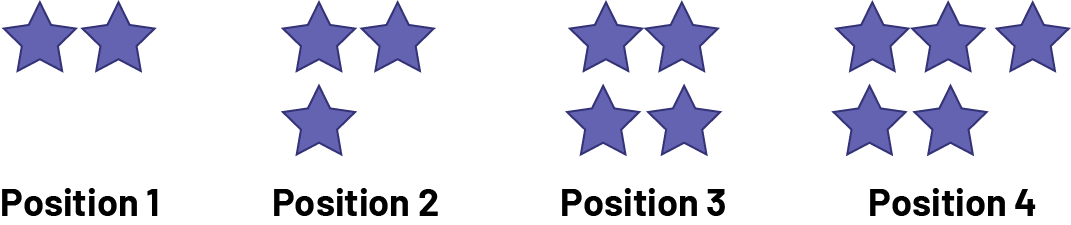 In Patterns B and C, each shape has its position: the first shape is in the 1st position, the second shape is in the 2nd position, etc. |