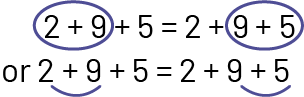 \(\displaylines{\begin{align}6 + 3 &= 3 + 6 \\ 15 + 14 &= 14 + 16 \\ 7 + 19 &= 19 + 7 \end{align}}\)