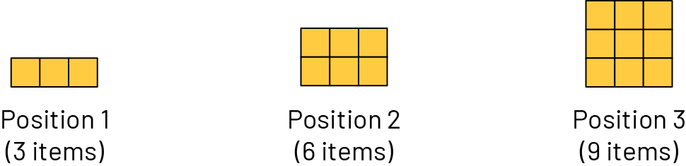 The arrangement of the elements for each position can help students see the operation that is being repeated. To help them, ask questions such as: