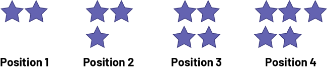 | Position: Where each element is located in a pattern, indicated by a number. It is used to help describe the functional relationships in a pattern and to predict the next elements in the pattern without having to extend it. | |