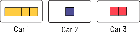 Introduce students to three train cars constructed with interlocking cubes of different colours.