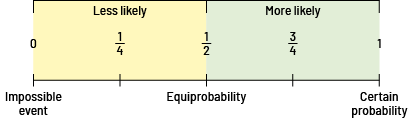D2.1 Use fractions to express the probability of events happening, represent this probability on a probability line, and use it to make predictions and informed decisions.