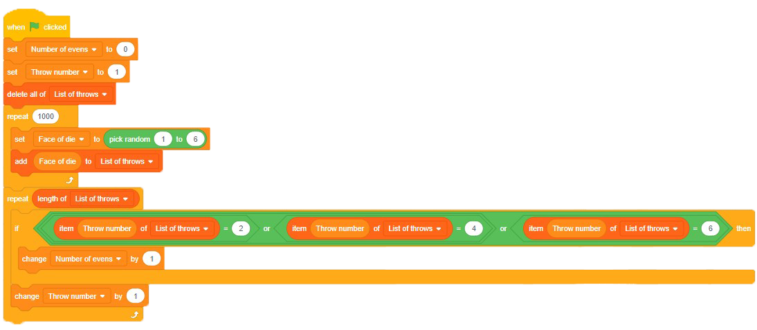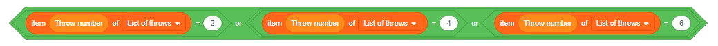 In which list should you find the even numbers? What variable do you need to add to search for even numbers? (I need to add the "length of the roll list", so that the entire roll list will be repeated) ![]()