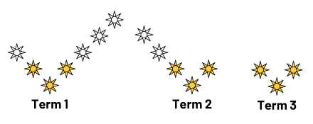 - The elements that make up each term in the pattern are structured to show a regularity. For example, from one term to the next in the above pattern, a sun is added at the end of each branch.
