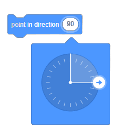 This option is functional, but is much less efficient and risks creating errors in the code. That being said, a student who has difficulty with negative integers could use this strategy to better understand how the number line works. The operation of the “point towards” block, by its very nature, introduces students to the effect of the negative sign by using 90 degrees to point right and -90 degrees to point left.