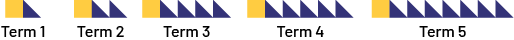 Pattern rule: For any term there is one green triangle and the number of squares is twice the term number.