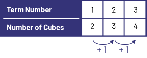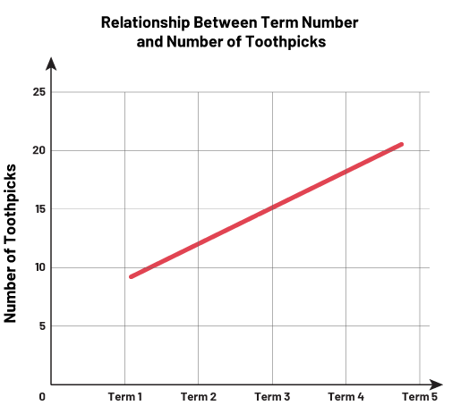 The arrangement of elements in geometric growing patterns can help with predicting the location of the elements in the next term. If the number of elements increase at a constant rate then it is a linear growing pattern. Therefore, students can identify, examine, and use the constant rate in other representations to distinguish a linear growing pattern from other types of patterns. In a coordinate system, a linear growing pattern appears as a straight line.
