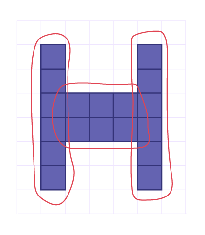 The first column represents 5x and the second column represents 3x. All together the tiles can be combined to give 8x.