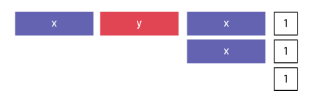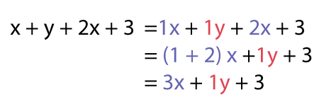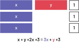 So, the result is 3 groups of x plus 1 group of y plus 3.