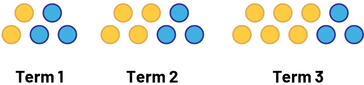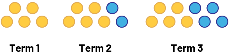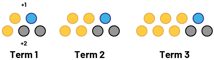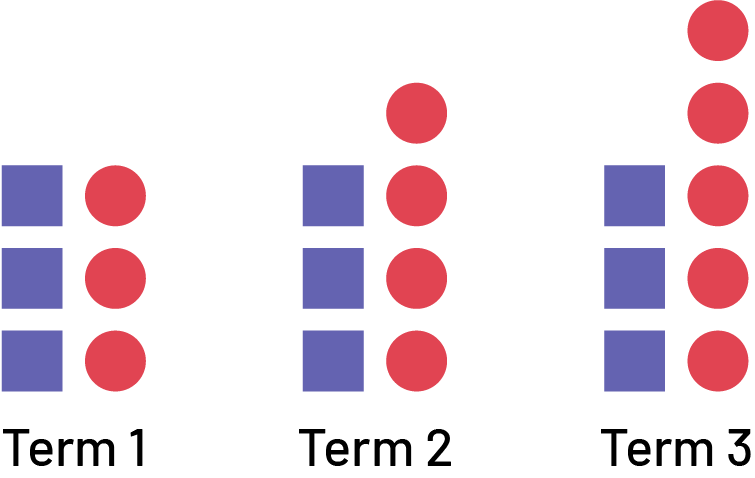 Students may also notice that the number of blue squares, 3, remains constant, while the number of red circles increases by 1 for each term.