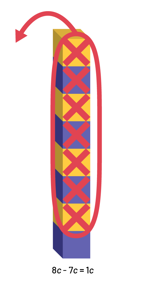 C2.1 Add and subtract monomials with a degree of 1 that involve whole numbers, using tools.