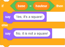 For example, it is possible to create a custom block that, when executed, calls a series of specific instructions (a subprogram). The first step is to create a block with two adjustable parameters (for example, base and height). In this case, the "rectangle" block sends the message to start executing the code below the "define: rectangle" block. This ensures that a rectangle of any size can be generated anywhere on the canvas, because the rectangle has been defined. Once the rectangle has been drawn, the main code continues.