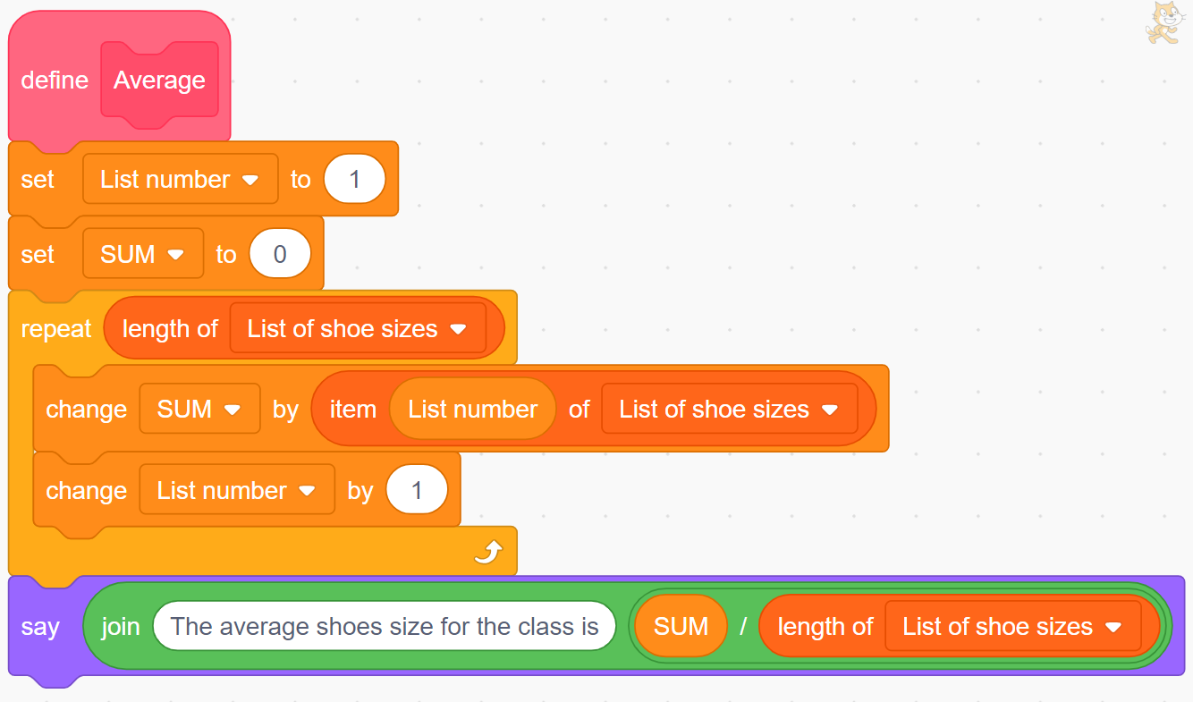 For example, when the student tries to make a code more efficient with subprograms, an error can easily appear in several places. In the example code that follows, the student chose to create a block to define his averaging sequence.