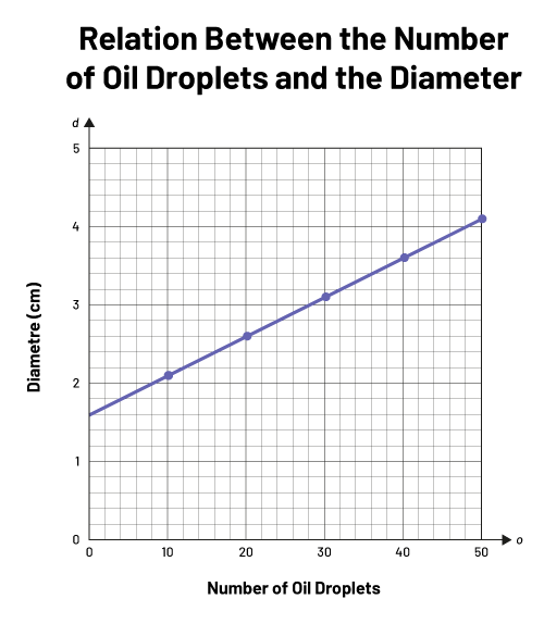 b) What will be the diameter of the circle if 60 drops of oil are dropped into a beaker filled with water? Determine your answer using an equation and another strategy of your choice.