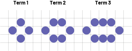 Extend this growing pattern. Predict the 10th term and the 50th term.