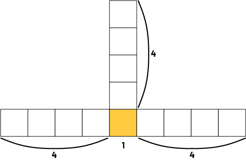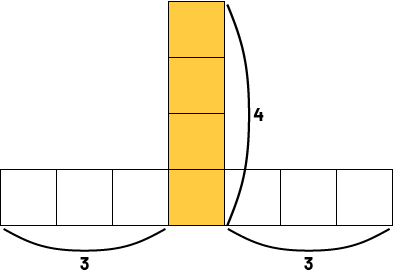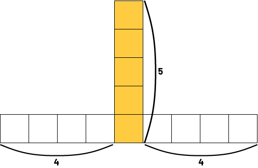 Student 3: "Yes. I see a column of five squares, then four squares on the left and four squares on the right. In total, I count 5 + 4 + 4, which is 13 squares."