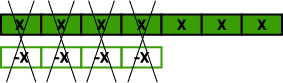Step 1: I use algebra tiles to represent the algebraic expression \(\ 2x + \ (-4x) \ + 3x + 2x\).