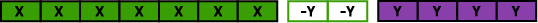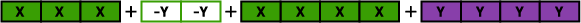I get 7 groups of x's and 2 groups of y's, that is\(7x + 2y\).