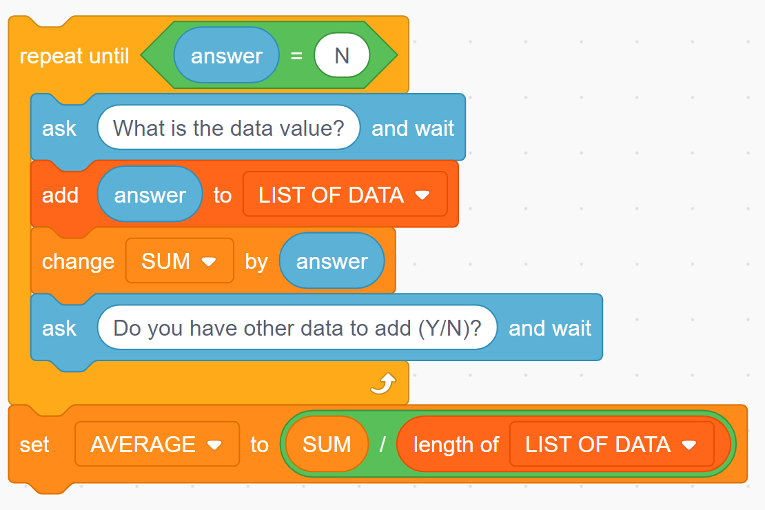 The calculation of the mean for a set of data in block-based coding program might look like this: