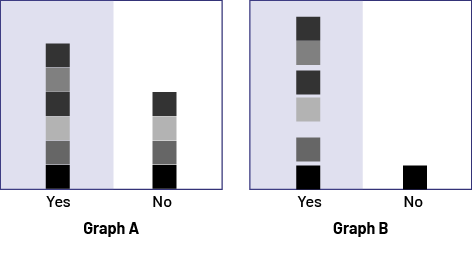 Image Two diagrams, each divided into two columns, Yes and No. In the first, three papers are stacked in the Yes column and two in the No column. In the second one, there is, on each of the three papers in the Yes column, a note clip of a different size. In the No column, there is also a note clip on each of the two papers.