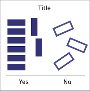 Image Box divided in two. The word “Title” is written above the box. On the Yes side of the box, six purple rectangles stacked on top of each other and two purple rectangles vertically beside them. On the No side, three white rectangles in a jumble.