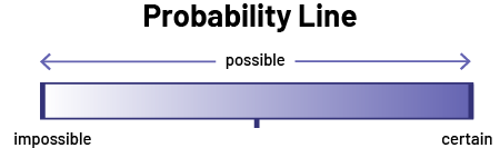 ImageUnder the title "Probability Line", the word "possible" appears between two arrows pointing to the extremes of the progressive bar below. The bar starts with white and gradually turns dark blue. On the far left is the word "impossible", and on the far right is the word "certain".