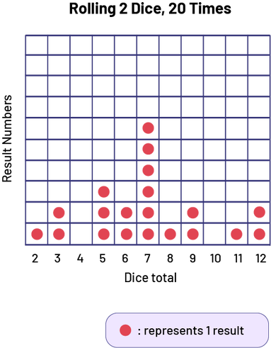 the vertical axis: Result Numbers. Title of the horizontal axis: Dice total Horizontal axis numbered from 2 to 12.