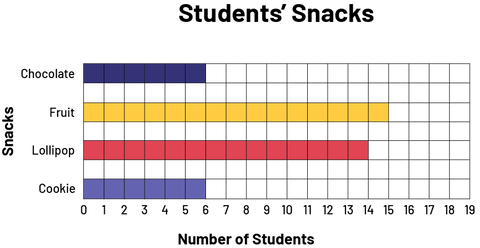related to a fruit, corresponds to 15 students. The red bar, for a lollipop, corresponds to 14 students. The purple