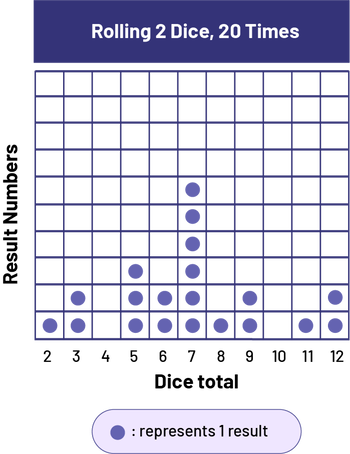 cells. Title of the vertical axis: Result Numbers. Title of the horizontal axis: Dice total Horizontal axis