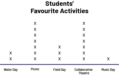 A Grade 2 teacher surveyed her students to find out their favourite school activity. Here is a line plot that shows the results of her survey.