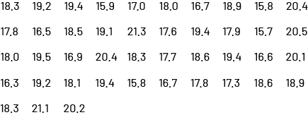The leaves of the graph correspond to the digits of the data associated with the tenths and the stems correspond to the other digits of the data, in other words 15, 16, 17, 18, 19, 20 and 21. We therefore prepare an intermediate graph that contains 7 rows and we place the data in it in the order that we see them, in other words starting with 18.3, followed by 19.2, and so on. We then obtain the following table.