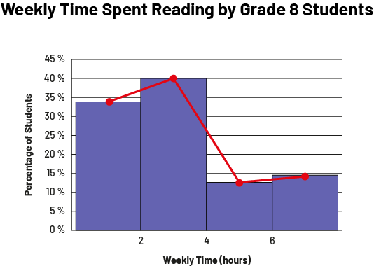 In the junior grades, students represent data using a variety of graphs, including multiple-bar graphs, stacked-bar graphs, histograms, and broken-line graphs. In Grade 7, the circle graph is added and in Grade 8, scatter plots are added.