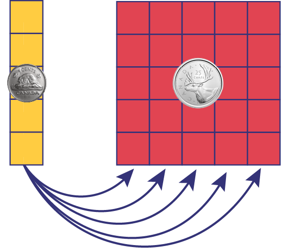 An example of the true relationship between the value of a 25¢ coin and the value of a 5¢ coin is visually represented, as the 25¢
