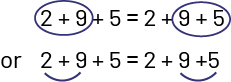 - associative property (for example, \((8 + 9) + 2 = 8 + (9 + 2)\));