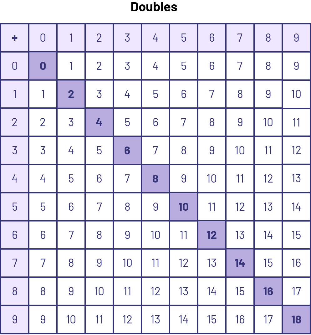 For these basic number facts, both terms are the same. It is beneficial for students to recognize and learn about doubles. There are only ten number facts related to doubles. Simple memorization tricks can be used to learn several doubles: