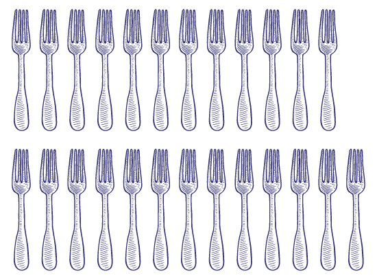 Show pictures of objects grouped in two rows or columns to students, such as: