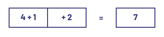 Note: If students are familiar with the commutative property, some may change the order of the terms to be added (for example, (4 + 2 + 1)). If so, ask them to justify why the order can be changed. Otherwise, simply mention that the order of the cars cannot be changed, since they are attached to the engine in this way.